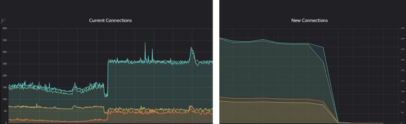 We did have, however, a hidden ace up our sleeve; we were suspecting that our new clients were not using persistent connections. Using the tcpconnect script from bcc tools, we observed a huge rate of new connections towards the Redis cluster’s TCP port.