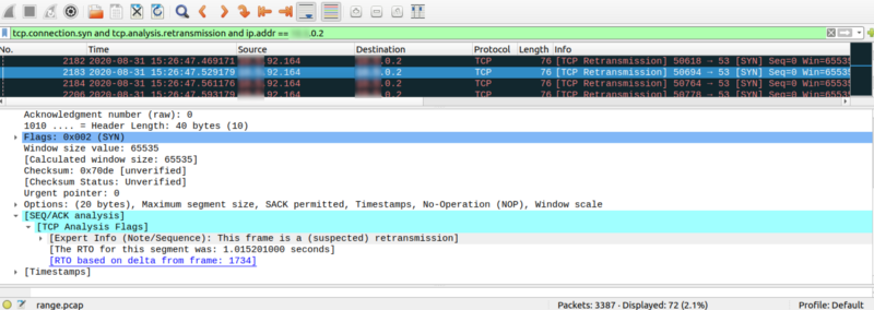 Having TCP retransmissions is normal and part of how TCP guarantees the packet’s delivery. But having 70+ retransmissions towards a single destination in a 8 seconds time range is not normal for our network.