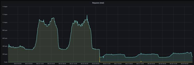 The latency of the responses decreased dramatically from milliseconds to microseconds; and the same goes for the total number of requests the coreDNS deployment was receiving. Everything seemed to be according to our expectations and the team was very pleased with the results.
