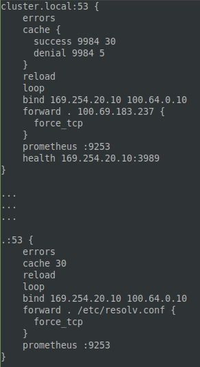 If you look closer at the latest part of the configuration though, you will notice an interesting choice of directing all the non Kubernetes related DNS queries through TCP as well. Initially, we were a bit skeptical about this choice but we decided to go with it since that was the default configuration that kops was using.