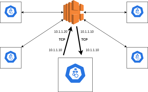 Our next step was to focus on the path from the kubernetes node to AWS NLB.